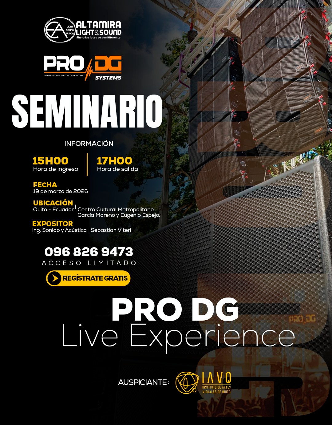Dear customers and friends in Ecuador, we are pleased to announce that on March 19, 2026, Altamira Light & Sound (official Pro DG Systems distributor in Ecuador) will be offering a Pro DG Systems product seminar in Quito.